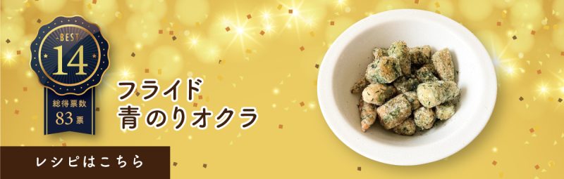 オクラを揚げるという発想が好評で、青のりの風味が加わり満足感が高いレシピです。