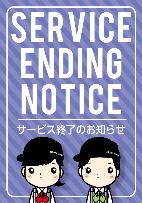 富田林駅前店キッチンスマイルのサービス終了のご案内です。