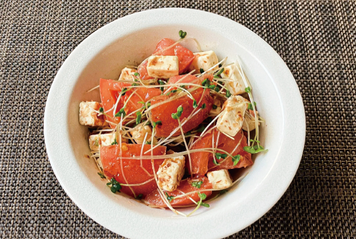 トマトはひと口大に切り、ブロッコリースプラウトは食べやすい長さに切る
