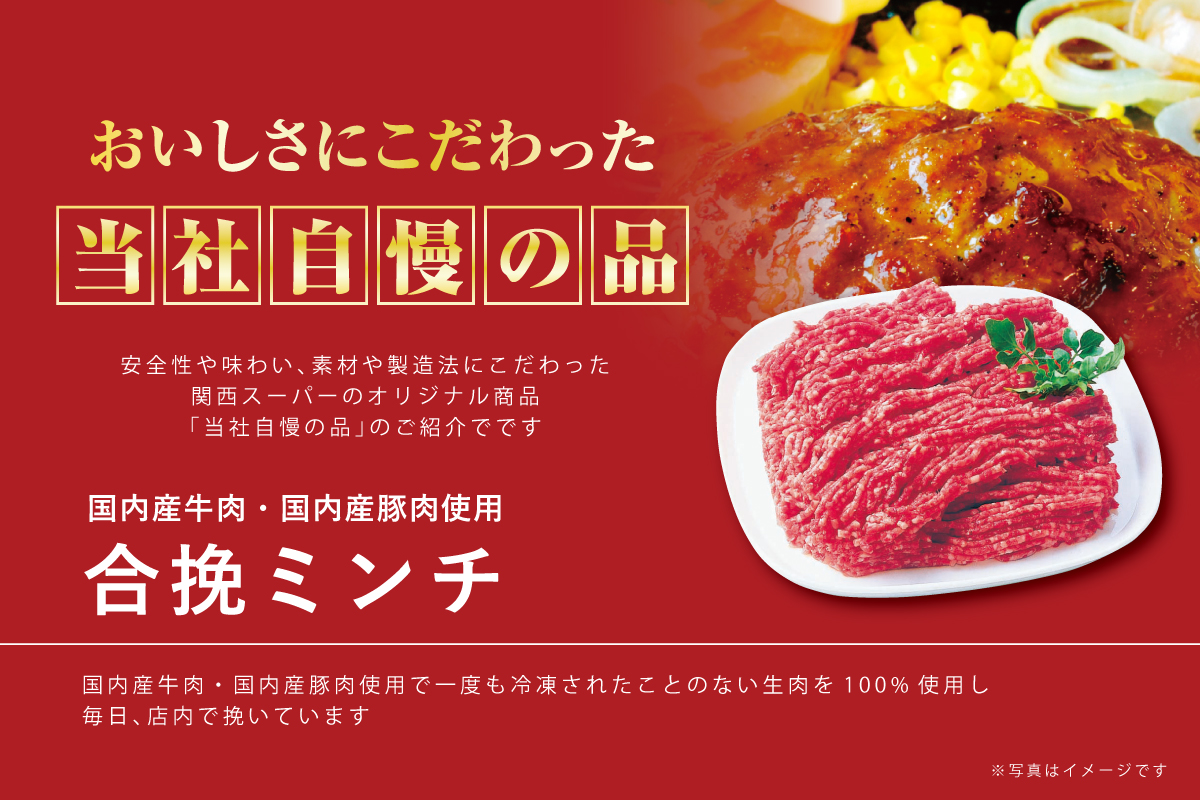 当社自慢の品「合挽きミンチ」を使って